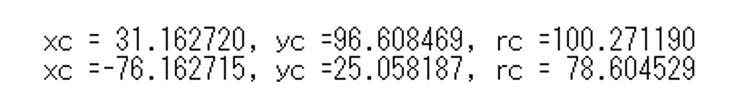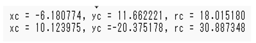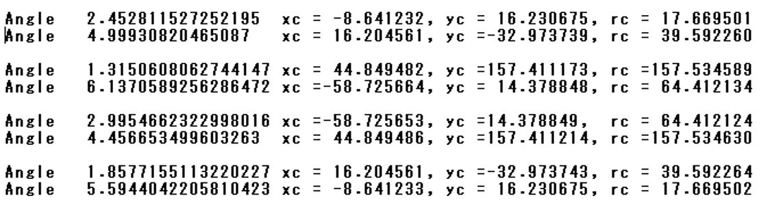 この結果において、8個の解が求められたが、中心座標と半径の数値が重複しているものがあり、整理すると図9-2に示す結果となる。