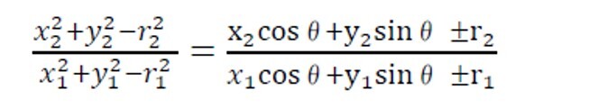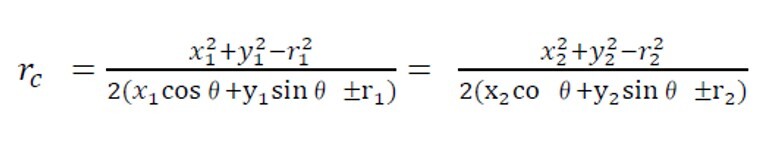 x12 +y12 -r12 = 2rc(x1cosθ+y1sinθ±r1)