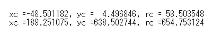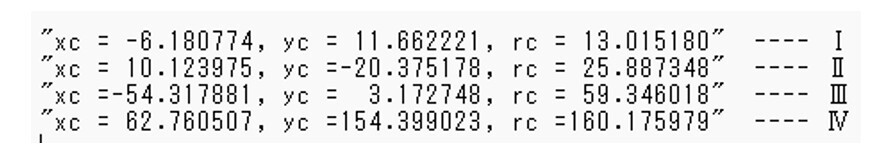 これらの各区間において角度の正解値と円の中心座標と半径の結果を図9-1に示す。