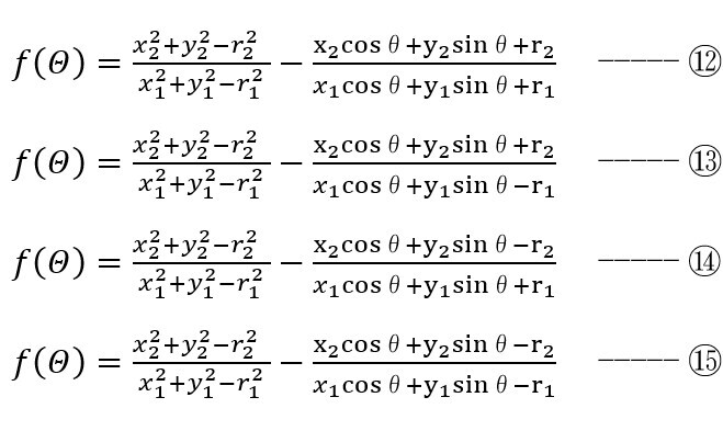 x22 +y22 -r22 = 2rc(x2cosθ+y2sinθ±r2)