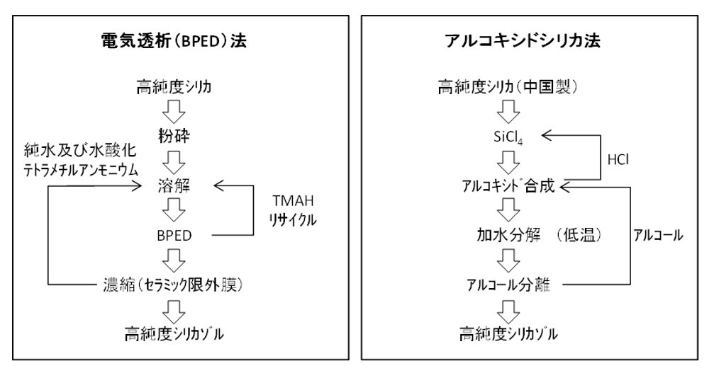 図2 アルコキシドシリカ法と電気透析法の比較
