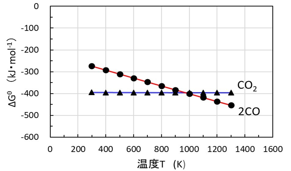 図2 CO2と2COの生成反応の標準自由エネルギー変化