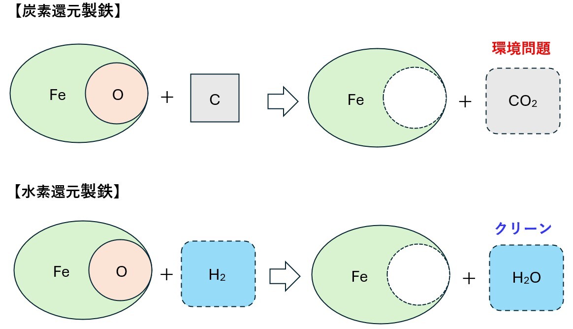 図5 炭素還元製鉄と水素還元製鉄の概念図
